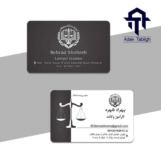برای دانلود کارت ویزیت وکالت طرح شهره، کافی است پس از پرداخت مبلغ تعیینشده، فایل لایهباز این طرح شیک و پریمیوم را بهصورت فشرده و با حجم کم دریافت کنید. فروشگاه اینترنتی آداک تبلیغ با ارائه طرحهای آماده و قابل ویرایش، همراه مطمئن شما در انتخاب بهترین طراحی کارت ویزیت متناسب با حرفه حقوقیتان است.